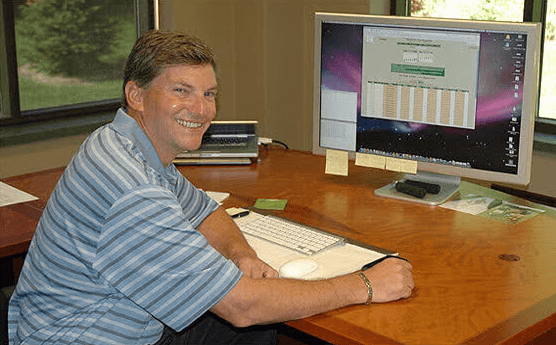 Image of Bob Parise at his desk in the early 2010s. He still loves his Post-it notes.