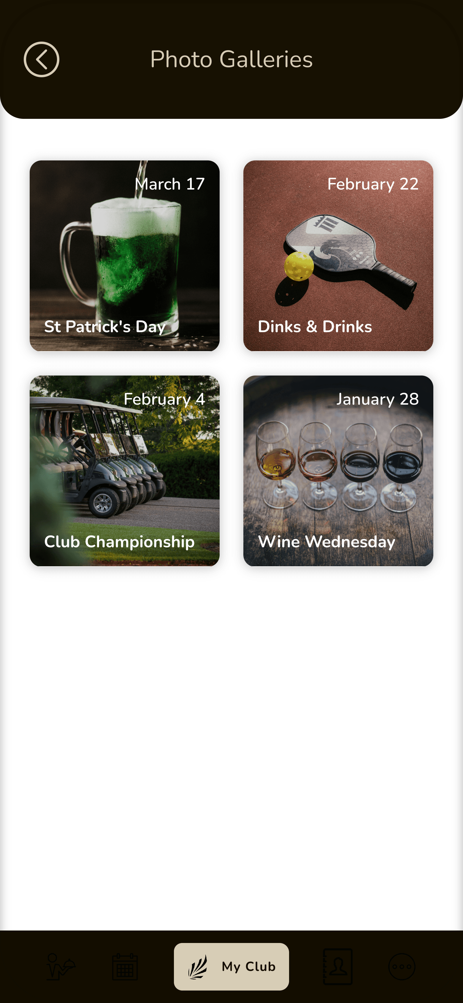 Shared photo albums allow members to view and upload photos from club events, strengthening community engagement and lasting memories.