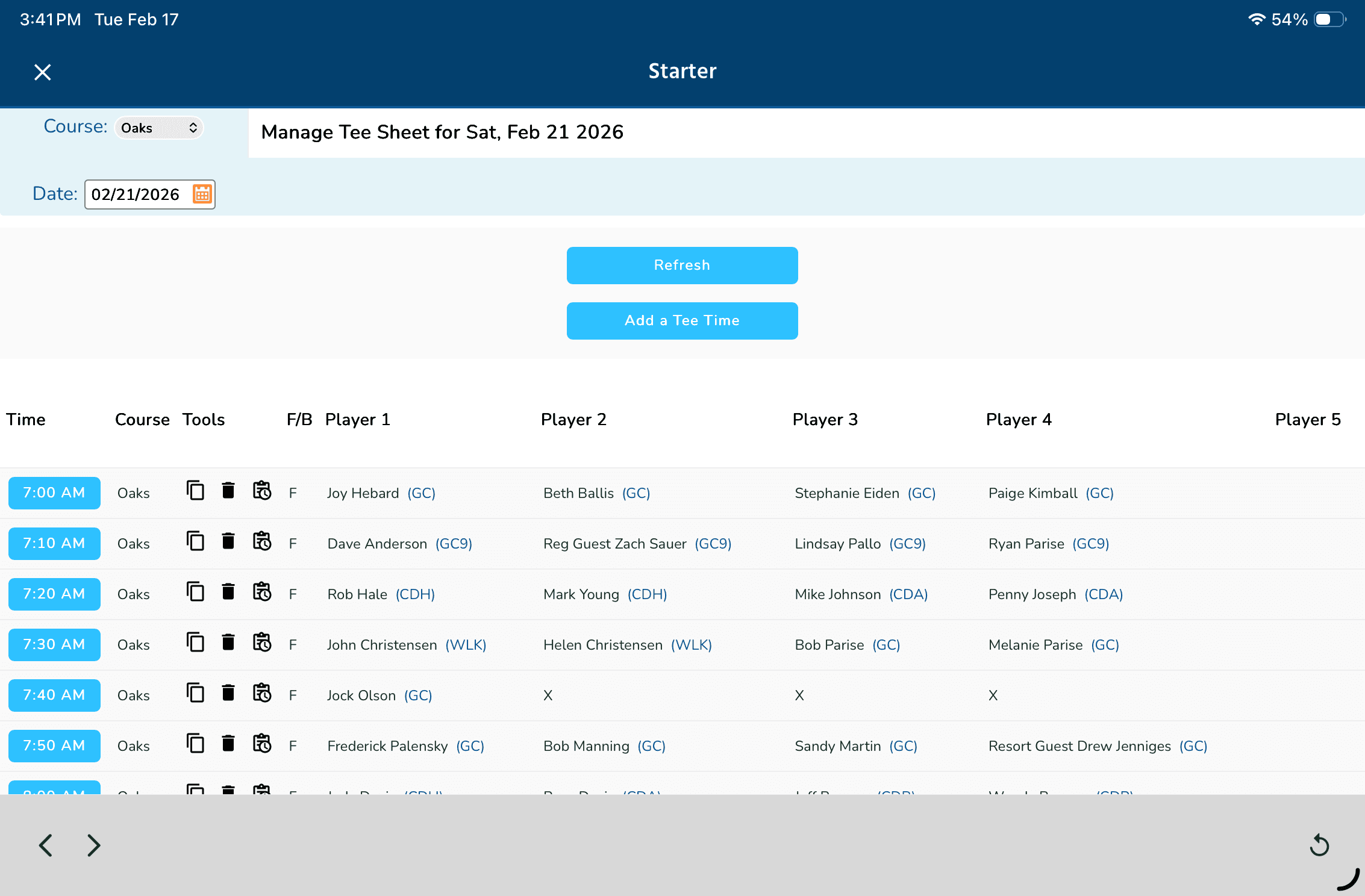 View and update the live tee sheet directly from the course.
